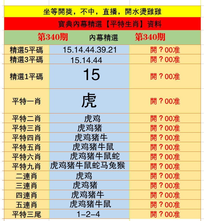340期: 发财四肖 【鸡鼠猪蛇】 开??准
